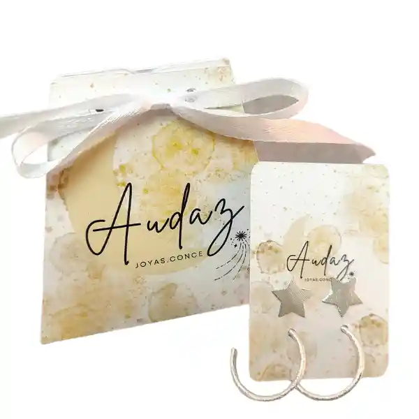 Aros enchapados en plata estrellas 1,2 cm + Semi Argollas Satinadas Delgadas 2,2cm. *¡Incluye caja de regalo!