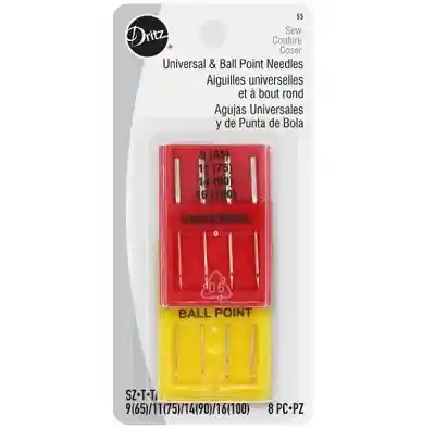 Contiene 1 paquete de agujas normales y 1 paquete de agujas punta bola. Con una aguja de cada grosor.