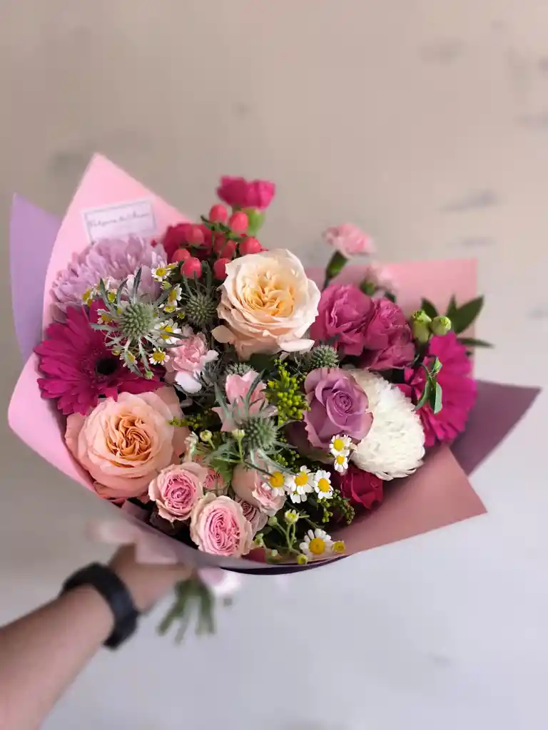 Mix de flores de temporada (16 varas) Composición floral con flores de temporada, seleccionamos las flores más lindas y frescas por ti. Todos nuestros ramos incluyen follaje y complementos lo cuales varían según la disponibilidad y stock en tienda al momento de solicitar el producto.