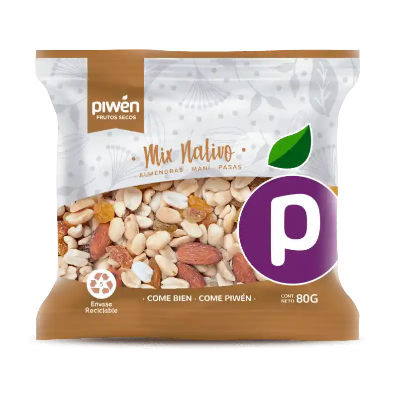 Mix de Almendras, Maní y Pasas Rubias. No contiene sal. Envase 100% Reciclable (PP5)