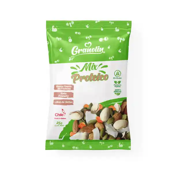 Snack creado para aportar proteína¨ Buena fuente de proteína Keto Friendly Libre de Gluten Libre de sellos Sin Fritura Libre de lactosa VEGANO 100% Natural 25 gr cada Snack La colación ideal para tus hijos INGREDIENTES: Almendras, semillas de zapallo, pistachos, golden berries y coco laminado.
