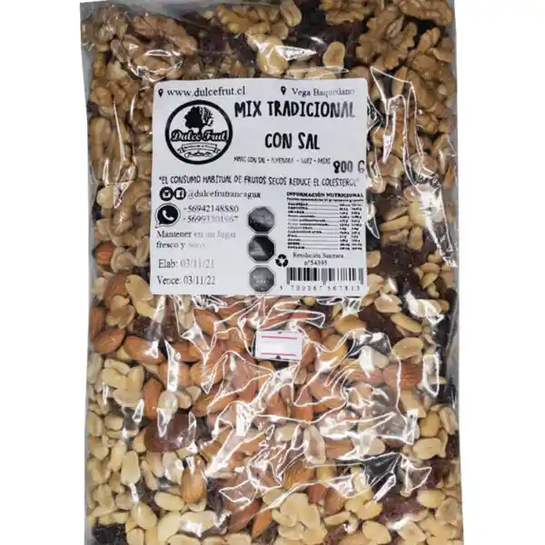 Mezcla de maní, pasas, nuez y almendras.