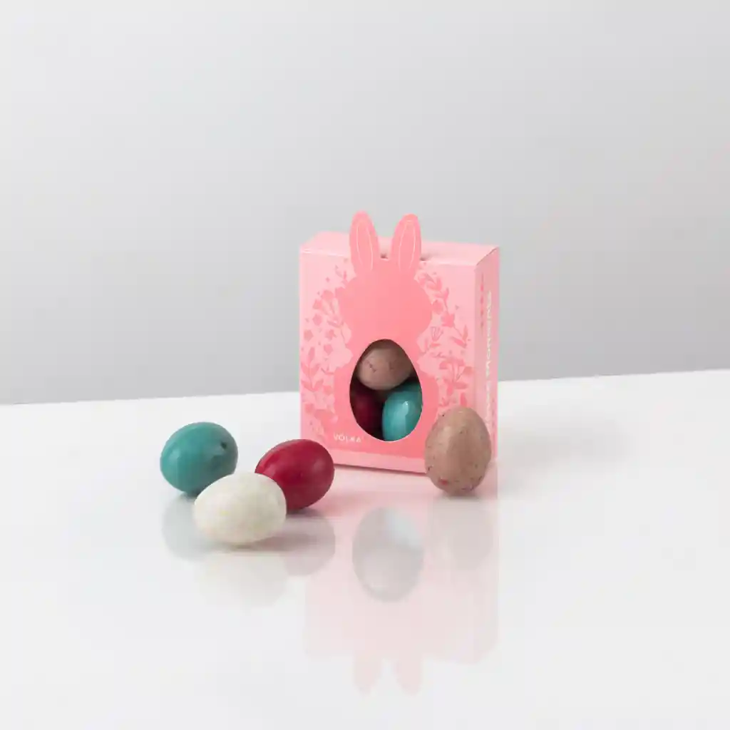 Una selección de huevitos con chocolate de leche y bitter, con centro cremoso relleno de praliné, gianduja y c...Ver más