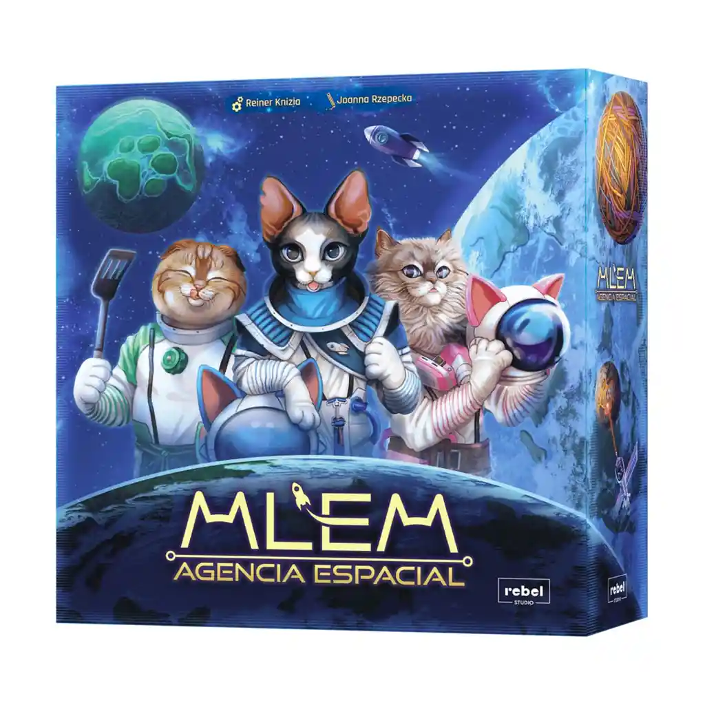 . MLEM Agencia Espacial es un juego de tablero de corte familiar en el que asumes el control de la comandancia de una expedicion estelar. Pero no eres un alto cargo cualquiera, al contrario, eres alguien muy especial, puesto que tus astronautas sonhellip;gatos! Estos intrepidos y testarudos astronautas hace ya mucho que se apoderaron de la Tierra y ahora desean conquistar todo el universo. Sin embargo, su imprudencia provocara mas de un desastre. Surca las estrellas a bordo de un cohete espacial o confia en tus instintos felinos y abandona la nave antes de que se estrelle. La fama y el reconocimiento del mundo entero ronroneara el nombre del mejor comandante de esta agencia espacial gatuna. CONTENIDO <li>5 tableros de Astronauta</li> <li>40 fichas de Astronauta</li> <li>64 fichas de Puntos, 6 dados</li> <li>1 indicador de Cohete</li> <li>1 Cohete</li> <li>1 tapete Estelar</li> <li>4 fichas de Objetivo</li> <li>1 ficha de Desastre sideral</li> <li>20 fichas de Reconocimiento</li> <li>20 fichas de Mision secreta</li> <li>5 fichas de Ovni</li> <li>1 Ovni</li> <li>14 fichas de Expedicion</li> <li>1 reglamento</li> </ul>