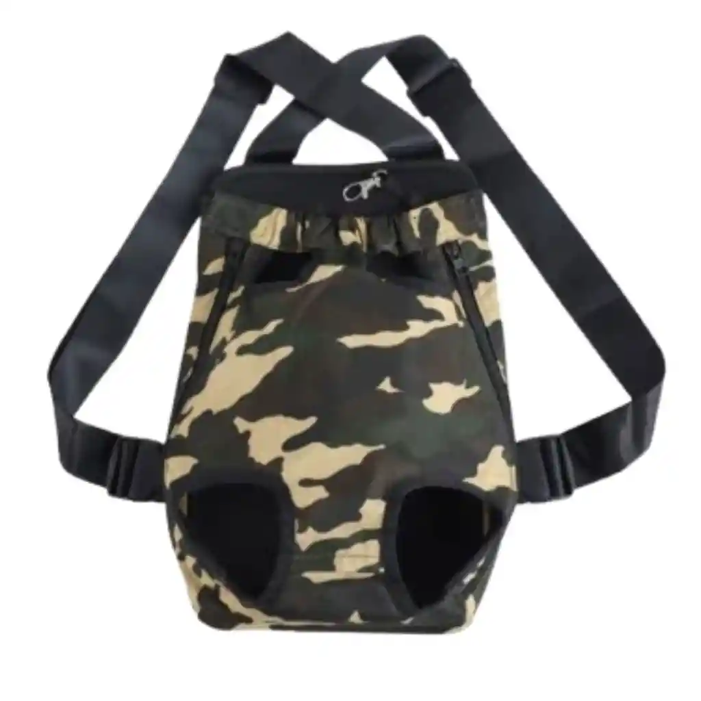 Se trata de una mochila canguro transportadora para mascotas con un diseño camuflaje, ideal para perros pequeños y gatos. Uso: Permite llevar a tu mascota de forma segura en la espalda o en el pecho, con las patas y la cabeza fuera. Material: Confeccionada en tela de lona (ligeramente acolchada) y malla transpirable para una buena ventilación y comodidad. Características: Correas ajustables y acolchadas para el confort del portador. Cierres laterales para facilitar la entrada y salida de la mascota. Diseño duradero y lavable. Adecuado para: Generalmente se recomienda para perros y gatos de razas pequeñas, con un peso de hasta aproximadamente 9 kg.
