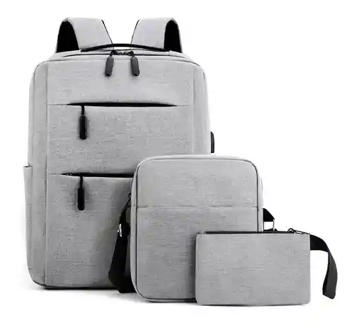 CARACTERÍSTICAS: - Versátil, elegante - Hecho con algunos de los materiales más ligeros y elásticos, no hay razón para llevar ningún peso innecesario. - Diseño modernos que te ayudan a acceder fácilmente al contenido de cualquiera de los bolsillos. - Unisex: Se adapta tanto a hombres como a mujeres con la simplicidad deseada - Juego de 3 bolsos: 1 x mochila, 1 x bandolera, 1 x bolso de mano. - Equipado con interfaz de carga USB. Puedes recargar en cualquier momento. - Hecho de tela Oxford impermeable superior. Fuerte y robusto. - Tamaño mochila: 41 x 26 x 16 cm - Tamaño bandolera: 20 x 22 x 7 cm - Tamaño bolso de mano: 18 x 11 cm ------------------------------------- ¡Haz tu selección! SOMOS CRUSEC.
