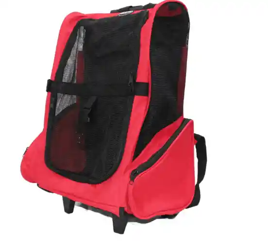 La mochila con ruedas Maxpet de color rojo, es un excelente y cómodo medio de transporte para tu mascota. Recorre la ciudad con tu bebé en un bolso cómodo con todo lo necesario. La mochila con ruedas Maxpet cuenta con dos bolsillos laterales que son ideales para guardar comida, snacks, toallas húmedas, documentos, certificados veterinario y mucho mas. Es ideal para perritos pequeños, gatitos, chinchillas, hurones, cobayas y conejos, es importante mencionar que es una mochila que resiste hasta 7 kilos. Medidas: largo 36cms, ancho 30cms alto 49cms.