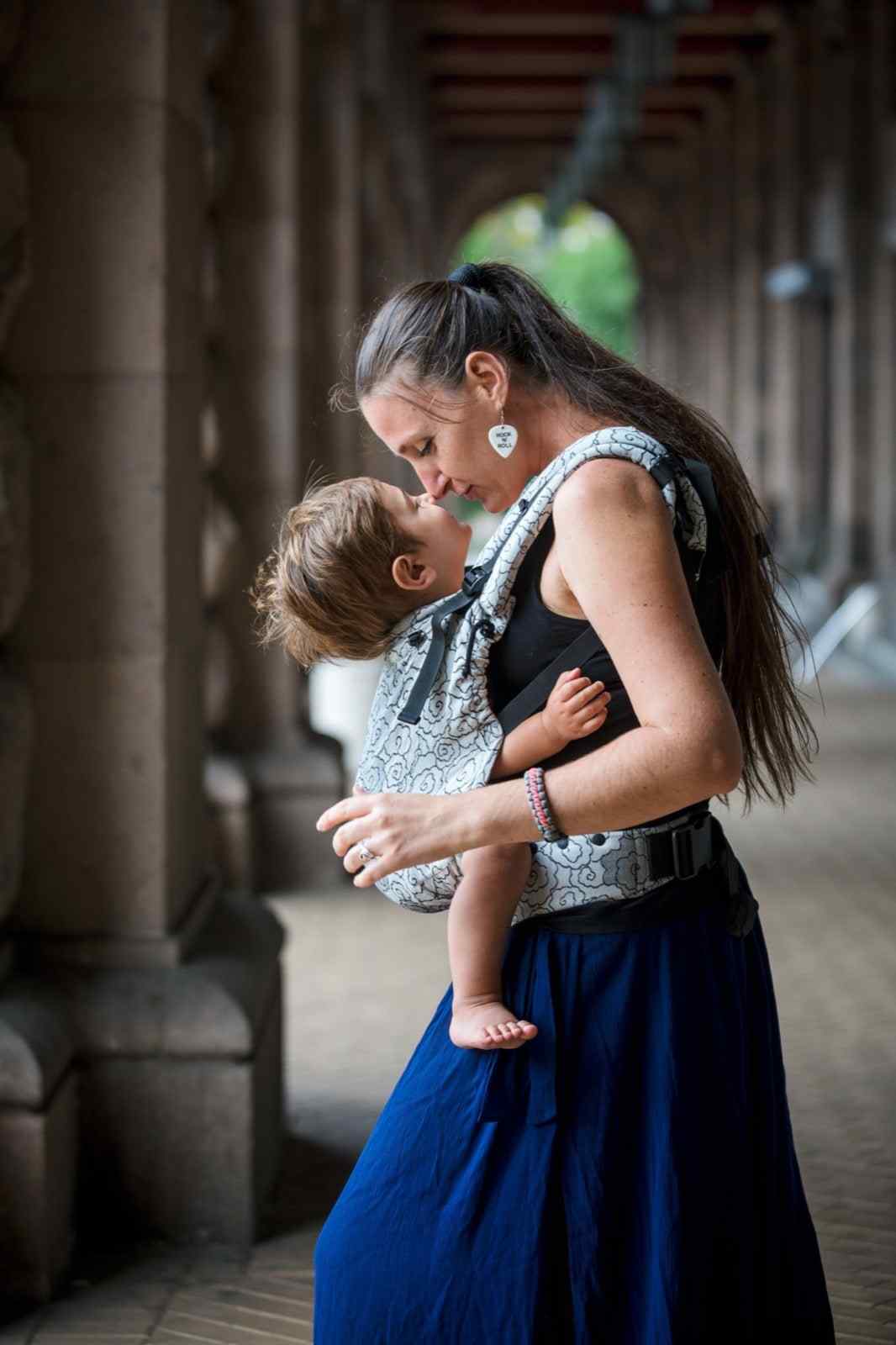 Neko Switch Toddler, se ajusta desde 86/92 cm hasta 5 años aproximadamente.Se puede ajustar el ancho y altura con broches y PFA, para soportar rodillas y cabeza del bebé.Tela de 100% bioalgodón suave, diseño elegante, capucha extraíble y aberturas acolchadas.Ancho de panel 38-54 cm, altura 41-53 cm, cinturón 75-145 cm.Elaborado con espuma de hombro de alta densidad, hebillas Duraflex y YKK.Se puede usar en posición frontal o trasera, con cara hacia adentro.No incluye cubretirantes.Lavado solo a mano.