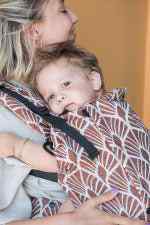 Neko Switch Toddler, se ajusta desde 86/92 cm hasta 5 años aproximadamente.Se puede ajustar el ancho y altura con broches y PFA, para soportar rodillas y cabeza del bebé.Tela de 100% bioalgodón suave, diseño elegante, capucha extraíble y aberturas acolchadas.Ancho de panel 38-54 cm, altura 41-53 cm, cinturón 75-145 cm.Elaborado con espuma de hombro de alta densidad, hebillas Duraflex y YKK.Se puede usar en posición frontal o trasera, con cara hacia adentro.No incluye cubretirantes.Lavado solo a mano.