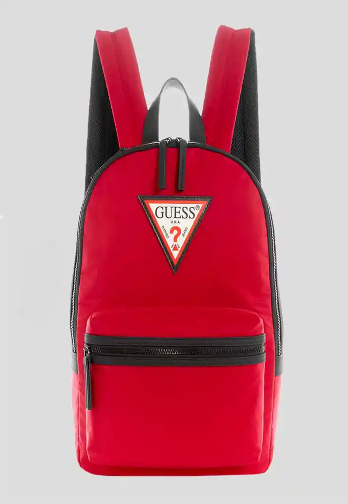 Modelo: TS703198. Mochila con asa de mano con dos correas ajustables al hombro. Diseño de tono liso con estampado de logotipo triangular Guess. Bolsillos con cierre de cremallera. Materiales: 100% POLYESTER.