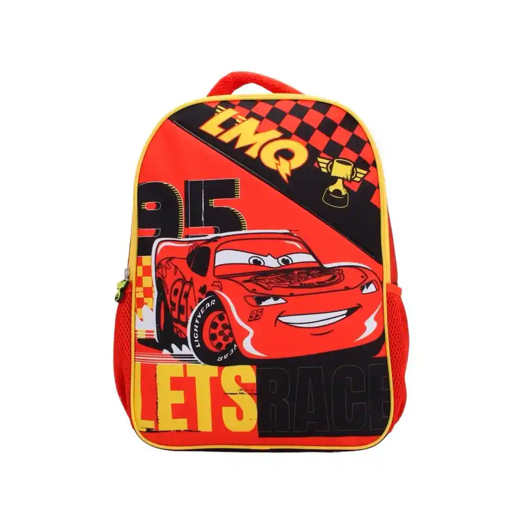 ¡La aventura comienza con cada paso! Nuestra mochila infantil de 15"", de nuestro corredor favorito del mundo de Cars, es el compañero perfecto para el regreso a clases. Ligera, espaciosa y cómoda, esta mochila está diseñada para acompañar a los niños en cada uno de sus días escolares, desde las primeras clases hasta las actividades extraescolares. Con un diseño divertido y colorido, será su aliada para llevar libros, cuadernos, y todo lo que necesiten con estilo y diversión. Porque aprender también puede ser una aventura: Esta mochila tiene todo lo necesario para mantener organizados los útiles escolares. Su compartimento principal ofrece amplio espacio para libros y cuadernos, mientras que los bolsillos exteriores son perfectos para llevar pequeños objetos personales, como una botella de agua o una merienda. Además, las correas ajustables y acolchonadas aseguran una gran comodidad para que los niños puedan llevarla todo el día sin sentir peso. Un diseño pensado para cada momento: Con materiales duraderos y resistentes, nuestra mochila de 15"" es ideal para el día a día. Con un diseño práctico, pero lleno de estilo, hará que cada niño se sienta lleno de energía y listo para enfrentar su jornada escolar. ¡El regreso a clases nunca fue tan emocionante y lleno de posibilidades! Medidas Mochila: 30 x 12 x 39 cms. Capacidad Mochila: 14 litros. Materialidad: Poliester