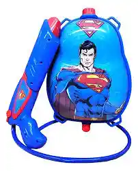 Mochila- tanque con pistola de agua Super Man – DC Espectacular pistola lanza agua y escudo super man para divertirse todo el verano !!! Muy fácil de usar-