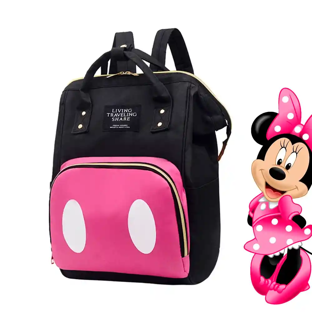 Material: Tela Oxford + Poliéster. Color: Fucsia Diseño: Minnie Tamaño: 50 cm x 30 cm / Profundidad 20 cm aprox Contenido: 1 Mochila Maternal Bolsillo exterior impermeable, fácil de limpiar, con compartimentos térmicos para 3 botellas. Calidad superior y ergonómica además está hecha de tela de poliéster resistente al agua.