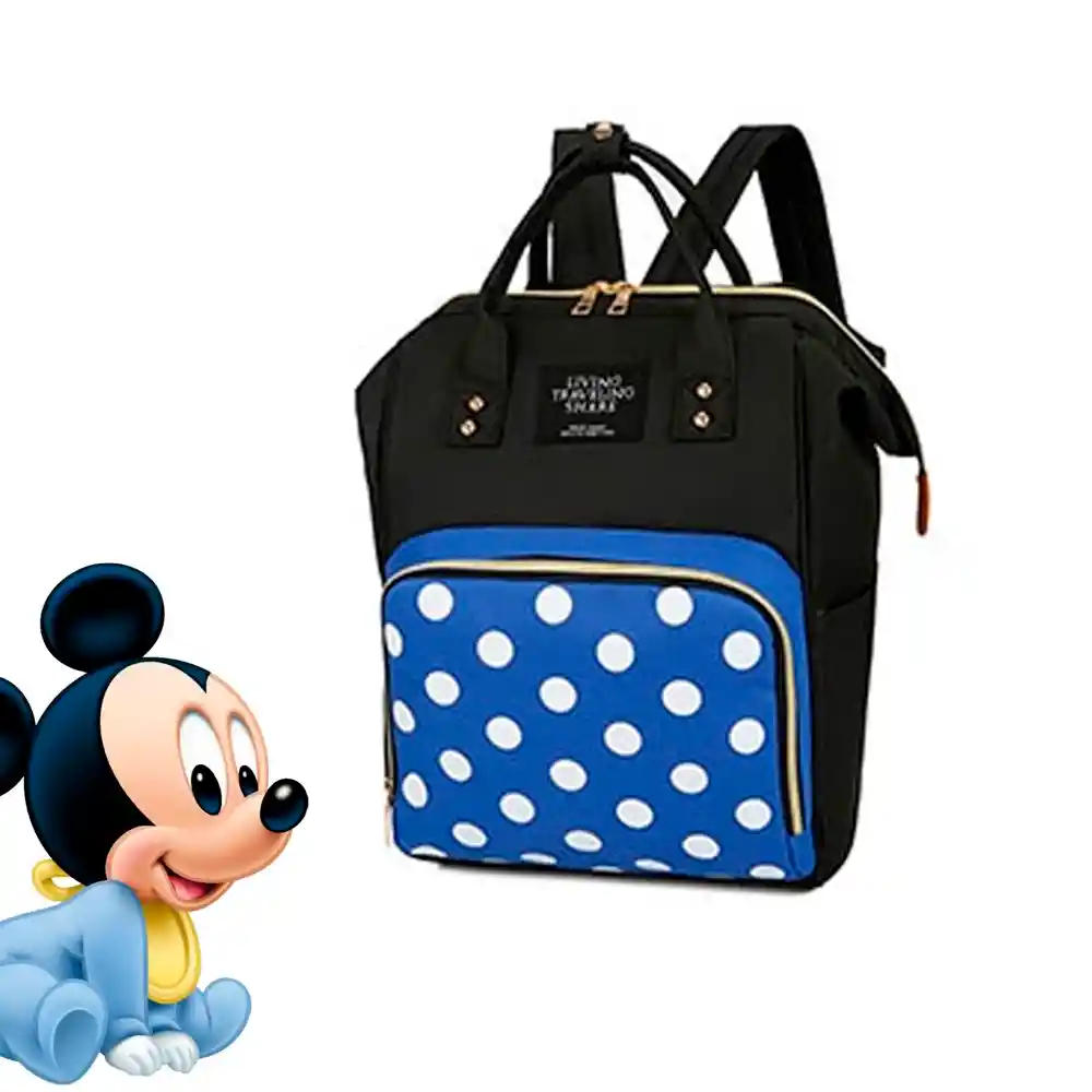 Características: Moderna mochila maternal con diseño de organizadores para ordenar fácilmente los artículos esenciales del bebé. Bolsillo exterior impermeable, fácil de limpiar, con compartimentos térmicos para 3 botellas. Calidad superior y ergonómica además está hecha de tela de poliéster resistente al agua. Con diseño de colores alusivos a Mickey y Minnie simbólicos personajes de Disney. Especificaciones: Material: Tela Oxford + Poliéster. Color: Negro + AZUL Diseño: Mickey (Según Disponibilidad) Tamaño: 50 cm x 30 cm / Profundidad 20 cm aprox Contenido: 1 Mochila Maternal