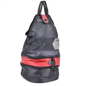 Descripción: Mochila multiusos, especial para esos días de paseo, picnic y más momentos especiales. practico para llevar todo lo necesario para un dia de picnic o viaje corto. Innovador diseño único con diseño ambidiestro. Cuenta con un amplio compartimento principal de malla con cierre de cremallera, y dos compartimientos inferiores, uno para utensilios y otro térmico. Seguro a su espalda con un cinturón de pecho ajustable con mango de arrastre. Para Camping, escalada, ciclismo, senderismo, Viajes, picnics Color: negro con detalles rojos Incluye: 2 platos plasticos 2 vasos 2 servilletas de tela 2 cucharas 2 cuchillos 2 tenedores. Dimensiones: 39cm x 20cm x 13,5 cm