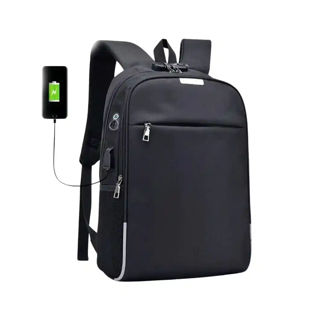 Mochila antirrobo para ordenador diseñada con un candado de combinación y doble cremallera metálica para proteger su cartera y otros objetos de los ladrones y proporcionarle privacidad. Diseño con puerto de carga USB. Si usted cuenta con batería portátil puede llevarla en la mochila y con el cable USB cargar sus dispositivos, ofreciendo una carga más cómoda de sus dispositivos mientras camina. Tenga en cuenta que esta mochila no incluye fuente de alimentación móvil y que el puerto de carga USB solo proporcionará un fácil acceso para la carga de sus dispositivos.