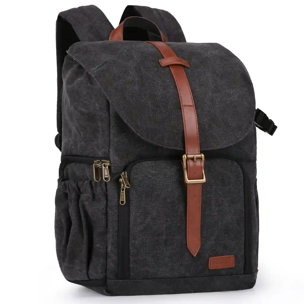 Bagsmart – Mochila para Cámara Anniston Bolsillo para trípode Zona de ropa Zona de cámara Comportamiento para notebook de 15” Mochila para cámara de gran capacidad 30.5 cm de largo x 17 cm de ancho x 38 cm de alto. Incluye espacio de almacenamiento superior para guardar ropa u otras cosas personales. La zona inferior tiene espacio para una cámara DSLR y 3-5 lentes estándar más otros accesorios. Además, tiene un compartimento acolchado grueso para laptop de hasta 15 pulgadas. Espacio personalizable Los divisores acolchados extraíbles pueden ajustar el espacio de acuerdo con el tamaño de la cámara y el tipo de accesorios de cámara que llevas para mayor protección. Acceso rápido El diseño de acceso lateral permite sacar la cámara rápidamente. Asimismo, el acceso con cremallera completa en la parte delantera hace que sea más fácil recoger y colocar el equipo. 2 bolsillos laterales grandes para guardar botellas de agua y trípodes. Mantiene la cámara segura Es resistente al agua, hecho de lona duradera e impermeable, incluye una cubierta para la lluvia. También tiene sistema antirrobo debido a las cremalleras con cerradura y un gancho metálico de alta calidad. Características de la mochila: Bolsillo para trípode Zona de ropa Zona de la cámara Compartimento acolchado para notebook Bolsillo para botella de agua Bolsillo para accesorios Mochila normal: con la extracción de divisores acolchados personalizados se puede convertir fácilmente en una mochila de cámara en una mochila diaria. Especificaciones: Peso: 1.514 kg Dimensiones: 30.5 cm de largo x 17 cm de ancho x 38 cm de alto Material: Lona Color: Verde, Azul, Negro, Caqui Modelo: BM0201001AN Garantía: 1 año