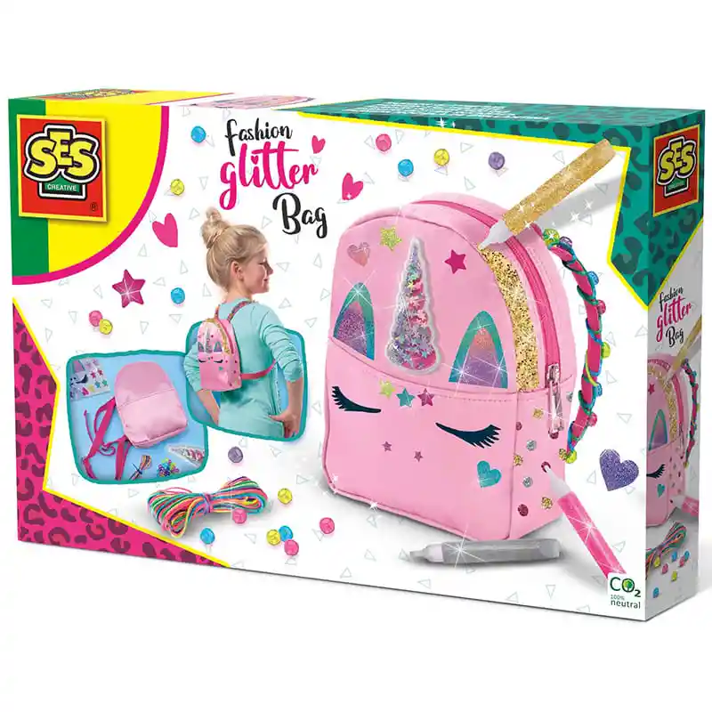 Edad: 5 años + ¡Con esta mochila de moda con purpurina, definitivamente robarás el espectáculo en la escuela! ¡Puedes hacerte una genial bolsa de unicornio con purpurina! El cuerno es una gran pegatina agitadora llena de estrellas y los ojos y las orejas del unicornio son pegatinas brillantes que puedes pegar fácilmente en la bolsa. Con los tres colores de pegamento con purpurina, decoras la mochila como más te guste y las correas se pueden decorar con las cuentas y el hilo de neón. ¡Así es como haces tu propia mochila única! Conjtenido: • Mochila • Pegatina cuerno unicornio • Pegatinas con purpurina • Glitter plateado, dorado y rosa • Hilos de colores • Cuentas de colores • Instrucciones
