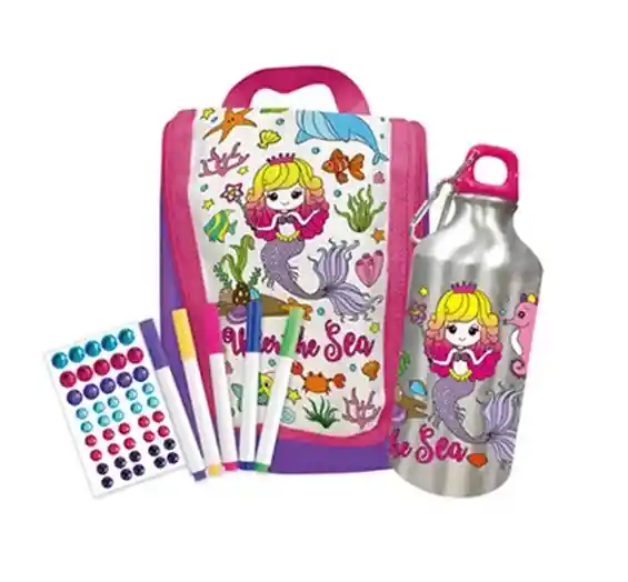 Lonchera y Botella de Agua Creativa para Niños: ¡Dale Vida con Colores! Perfeto regalo de cumpleaños, navidad o cualquier otra ocasión. ¡Presentamos nuestra Lonchera con botella de agua especial para niños, diseñada para despertar su creatividad y hacer que la hidratación sea aún más divertida! Con esta Lonchera podrán transportar todo lo que necesiten para el colegio o cualquier otra actividad. Este pack es más que una lonchera común o recipiente para líquidos, los niños tendrán la pintarlos y decorarlos a su manera. Características Principales: 1. Material Seguro y Duradero: Fabricada con materiales de alta calidad y seguros para los niños, esta botella de agua es resistente y está libre de BPA, garantizando la salud de tus pequeños mientras disfrutan de su obra maestra. 2. Superficie Listo-para-Pintar: La Lonchera y la Botella vienen con una superficie especial que actúa como un lienzo para que los niños dejen volar su imaginación. La pintura de los lápices que vienen incorporados se adhiere fácilmente y se seca rápidamente, permitiendo que los pequeños artistas creen diseños coloridos y únicos. 3. Incluye lápices y gemas: Cada pack viene con un conjunto de lapices no tóxicas y con una serie de gemas, todo lo que necesitan para comenzar a pintar y decorar de inmediato. Los colores vibrantes y la facilidad de aplicación garantizan una experiencia creativa y sin complicaciones. 3. Tapón Hermético Anti Derrames: La botella cuenta con un tapón hermético que evita derrames accidentales, ideal para llevarla al colegio, para hacer deporte, al parque o a cualquier aventura. 4. Capacidad Perfecta para Niños: Con una capacidad adecuada para las necesidades de los niños, esta botella es fácil de sostener y beber, promoviendo hábitos saludables de hidratación y la lonchera tiene el tamaño perfecto para llevar lo que necesites al colegio, vacaciones o algún paseo
