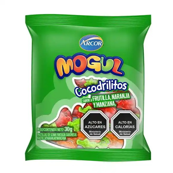Deliciosas y divertidas gomitas dulces con forma de cocodrilo sabor a frutilla, naranja y manzana.