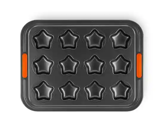 Da rienda suelta a tu creatividad culinaria con esta bandeja para hornear con 12 moldes. Gracias a los moldes con forma de estrella, prepararás galletas y pasteles únicos para celebrar las fiestas o en cualquier ocasión. El revestimiento antiadherente permite desmoldar el contenido fácilmente para obtener resultados sensacionales.