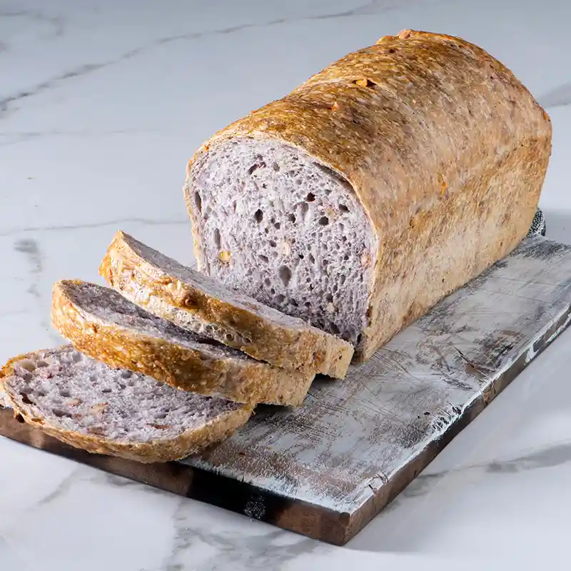 Pan de molde rústico blanco de masa madre y harinas puras sin aditivo con nueces. 800 gr.