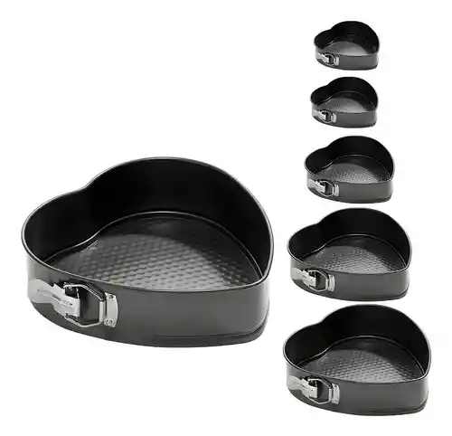 Moldes De Torta Decoración Corazon Molde Queque Pastel 6pcs . Excelentes moldes para realizar tortas o queques con forma de corazón. . Fácil limpieza y almacenamiento. . Resistente a olores y manchas. . Ideal para hornear. . Fácil para realizar el desmolde. . Ideal para ocasiones de fiesta de cumpleaños, boda, baby shower y otros. . No se pega la preparación. . Tendrá siempre a mano un molde para una perfecta ocasión, sea que necesite hacer una tarta o bizcocho pequeño. . Usted tendrá en su cocina un resistente molde de hornear de prolongada durabilidad dada su calidad. . Seguro de palanca . Modelo de corazón . Tamaños de los moldes de corazon: 18 cm, 20 cm, 22 cm, 24 cm, 26 cm, 28 cm aprox. . 6 moldes de aluminio desmontable Contenido del paquete: 6 x Moldes de tortas modelo corazon