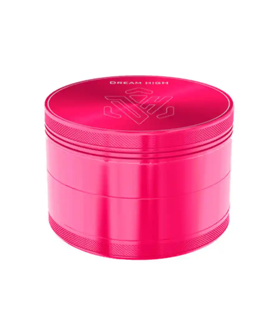 Grinder Dream High Aluminio Pink 63mm Características: Moledor de diseño clásico de 4 partes es el mas usado,gracias a su aluminio anodizado de alto grado ( capa protectora de oxido) , aumenta la durabilidad y resistencia del moledor. Cuchillas tipo diente de león que permiten un molido más acabado y superior al de las cuchillas estándar , tiene además un cierre magnético y pantalla para polen. Incluye: Caja negra Bolsa protectora Palita