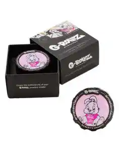 Moledor G-Rollz 4 partes 53 mm Banksy Conejo Material: Aluminio Diámetro. 53 mm Con imán para adherirse a bandejas o superficies metálicas Antiadherente Con palita recolectora y cepillo de limpieza