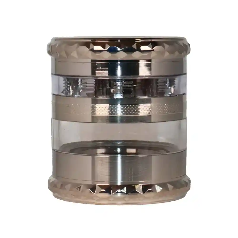 Moledor Visio de 4 partes 63mm para picar la materia herbal de forma rápida y sencilla. Con 4 partes desmontables donde la última permite recoger un material preciado por muchos, el Kief. Una forma muy eficaz de moler las flores. Anteriormente solo se podía moler con la mano, por lo que se perdía gran parte de la resina y del aroma al ser aplastadas con los dedos. Hoy en día, los moledores ayudan a que esta acción sea mucho más rápida, práctica e higiénica para su consumo. El tercer piso de este moledor donde cae nuestro material triturado, tiene una malla, que sólo deja pasar los tricomas que caen cuando se muelen los cogollos, donde se irán depositando. Contienen una pequeña paleta con la que recoger lo acumulado en el depósito de polen. Características: Material: Zinc Partes: 4 Malla recolectora Medidas: 7.5cm x 6.3cm