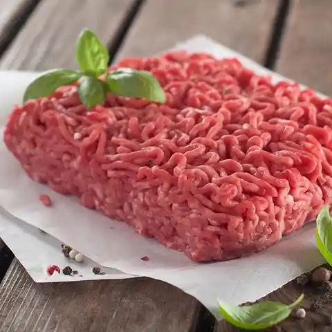 Carne molida con muy bajo porcentaje de grasa (4% aprox). Carne fresca nacional, categoría V.