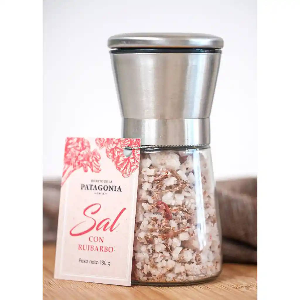 Molinillo con Sal de Mar de Cahuil con Ruibarbo deshidratado, 180 g.