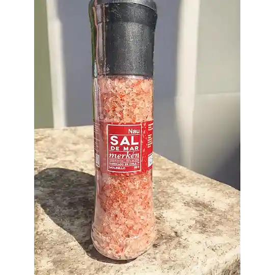 Molinillo PET de sal de mar y Merken , especial para condimentar cualquier preparación. Envase de 380gr