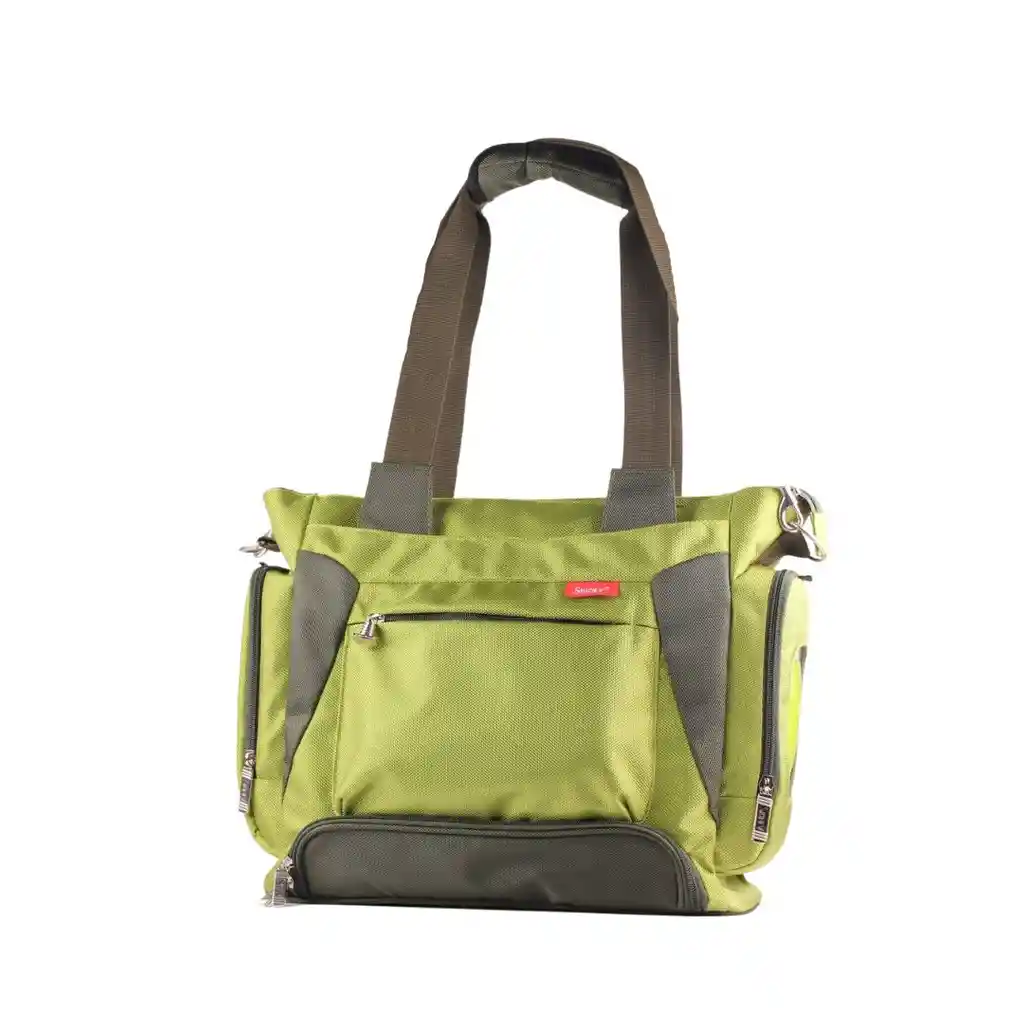 Múltiples bolsillos de almacenamiento. Bolsillo térmico. Tamaño conveniente, compacto y espacioso. Confeccionado en nylon. Incluye cambiador. Diseño práctico para los padres y otros cuidadores. Excelente almacenamiento Esta pañalera cuenta con 12 bolsillos pensados en la necesidad y comodidad de padres y cuidadores. Incluye 4 bolsillos interiores elasticados y 1 bolsillo con cierre, 4 bolsillos exteriores, 1 bolsillo frontal con botón magnético y 1 bolsillo trasero. Además cuenta con dos bolsillos laterales, uno térmico para la mamadera y otro especial para colocar el empaque de toallitas con una ventana de fácil acceso. Tamaño conveniente y compacto. Es de buen tamaño pero de diseño compacto. Está hecho en nylon y tela impermeable para facilitar la limpieza. Se puede llevar del hombro o se puede colgar del coche con las correas especiales que incluye. Diseño funcional Incluye un cambiador para mayor comodidad y tiene un bolsillo inferior impermeable donde se puede llevar de forma separada ropa mojada o sucia que no se quiera en contacto con las demás cosas del bebé. Su color llamativo hace que el diseño no solo sea divertido y moderno sino conveniente al momento de dejarlo en el lugar de cuidado o jardín, así pueden encontrar más rápidamente lo que el bebe necesita. Especificaciones: Material: Nylon Peso: 725 gr Dimensiones del bolso: 37 cm x 32,5 cm x 15 cm Dimensiones del cambiador: 55 cm x 30cm Color: Verde Modelo: MM3101007AN007