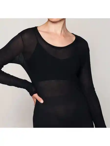 Monarch Top Skin Manga Larga Escote Recto Negro