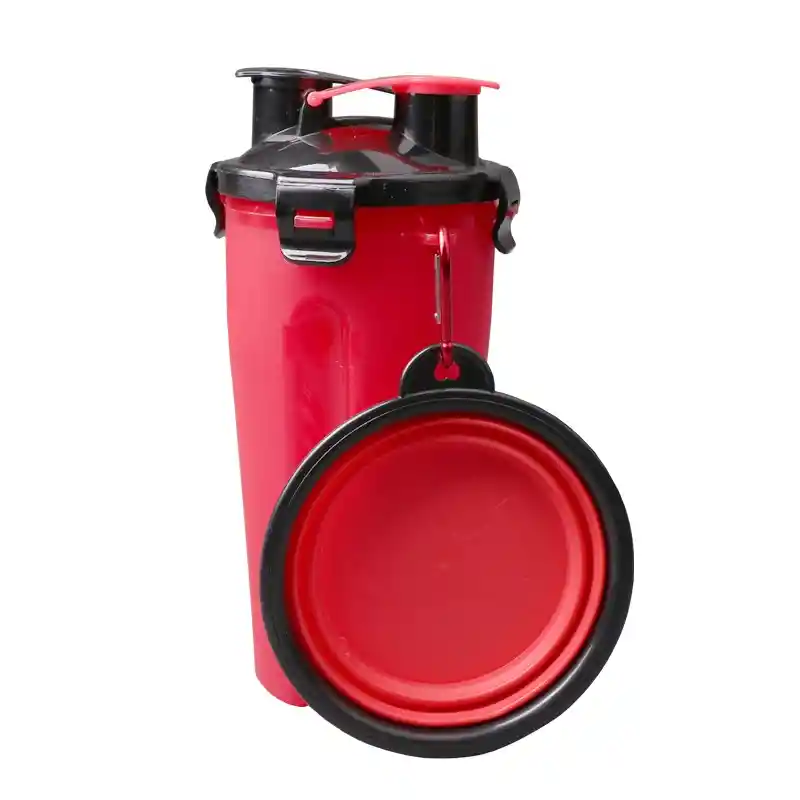 Botella 2 en 1 para llevar agua y comida a viajes y paseos.