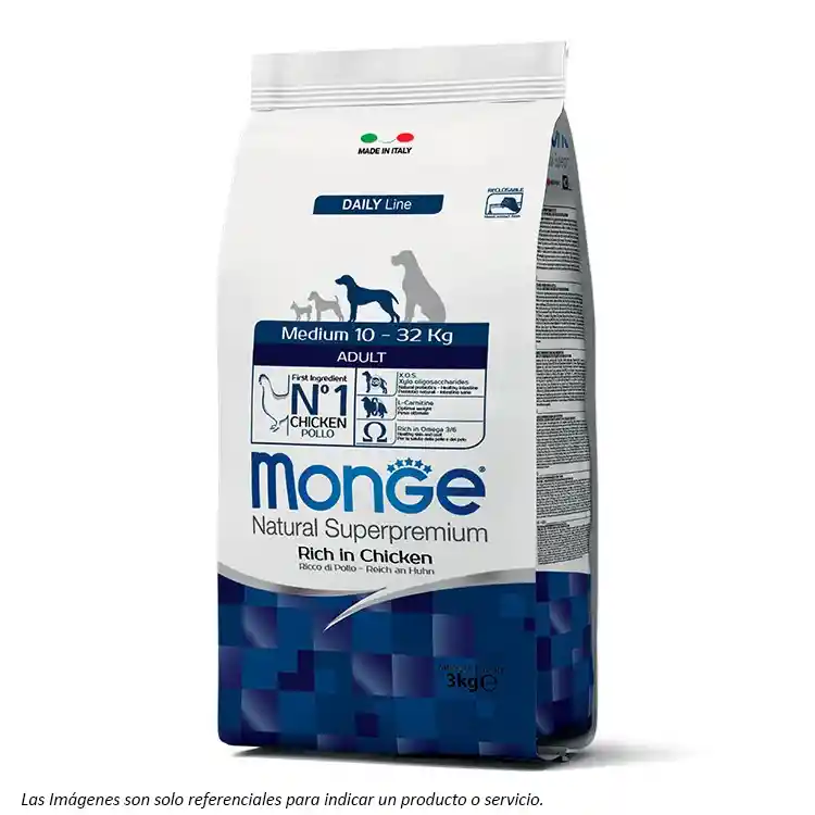 Alimento para Perros Adultos de Razas Medianas (10 a 32kg) mayores de 12 o 14 meses (Según su raza). Elaborado con Pollo, Arroz y Maíz como fibra para una buena digestión. Enriquecido con Prebióticos naturales para fortalecer intestino. Con alto contenido en Omega 3 y 6, en un balance perfecto para piel y pelaje brillante. Libre de Transgénicos, soya, colorantes, saborizantes y conservantes artificiales. INGREDIENTES: Pollo (fresco 10%, deshidratada 30%) arroz, maíz, grasa animal, (aceite de pollo, contenido en grasa 99,5%, conservado con antioxidantes naturales), pulpa de remolacha, levadura de cerveza (fuente de MOS y Vitamina B12), gluten de maíz, proteínas animales hidrolizadas, pescado (salmón deshidratado), aceite de pescado (aceite de salmón), cartílago hidrolizado, (fuente de sulfato de condroitina), crustáceos hidrolizados (fuente de glucosamina), metilsulfonilmetano, XOS (Xilo oligosacáridos 3g/kg), levadura hidrolizada (MOS), yucca schidigera, espirulina.