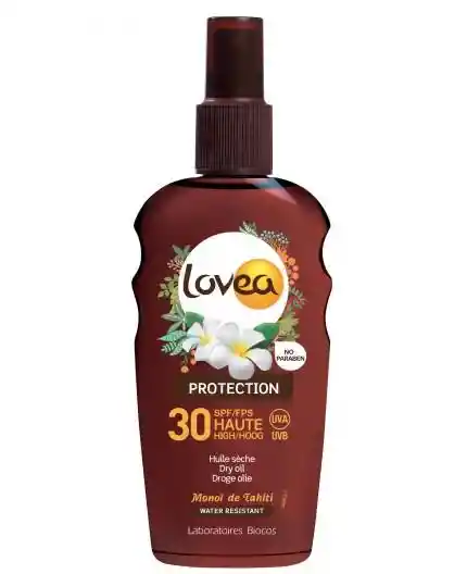 Lovea ofrece su Protector Solar Hidratante Spray SPF50 Monoi de Tahiti. Formulado sin parabeno, protege eficazmente los rayos UVA y UVB. Gracias al sistema Spray, las cremas de protección solar Lovea se aplican de una sola vez. La sobreexposición al sol es una seria amenaza para la salud. Waterproof. Todos los bloqueadores lovea tienen sobre el 95% de sus ingredientes orgánicos, son fórmulas veganas, fabricados y envasados en Francia.