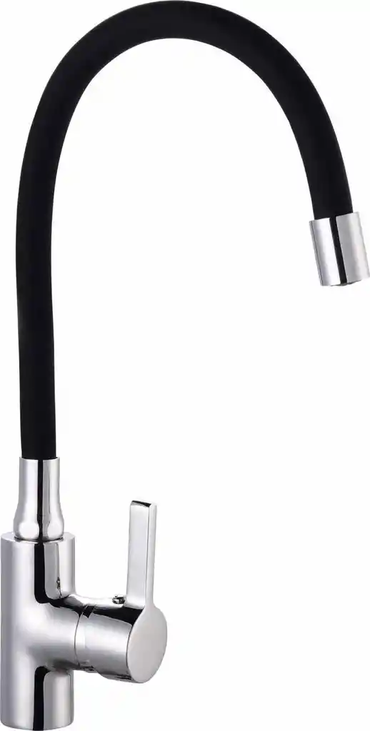 Monomando lavaplatos con cuello flexible de color negro para agua fria y caliente, anclaje de cilindro, cuerpo griferia metalica con flexibles de 1/2 35cms de alto
