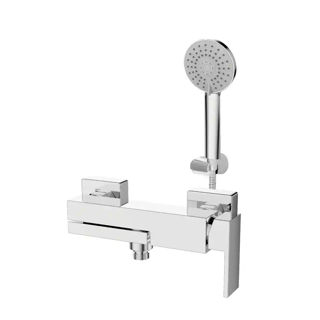 Fred es una línea de grifería monomando de diseño moderno y funcional, donde destacan las líneas rectas. Incluye mango ducha - colgador cónico - flexible ducha metálico 1,75 mt. Garantía grifería 5 años.