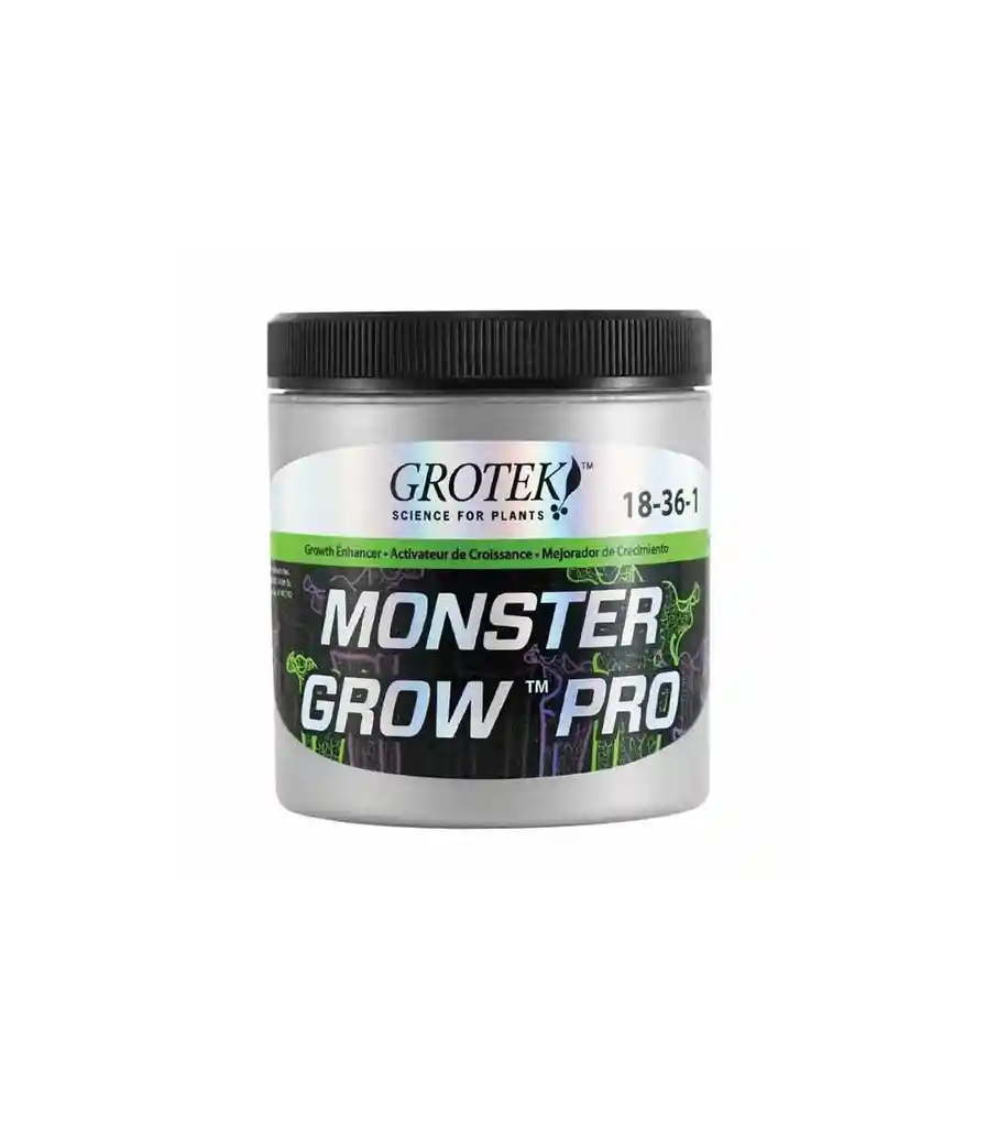 Monster Grow Pro es un suplemento puro diseñado para aumentar el desarrollo de las hojas y conseguir más raíces antes del desarrollo de la planta. Es un polvo soluble en agua que combina minerales y compuestos orgánicos para el desarrollo de la planta.