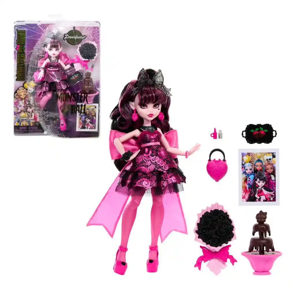 ¡Una noche espectrocular espera a estas muñecas Monster High™ en el Monster Ball™! Vienen con estilos escalofriantes y accesorios temáticos de fiesta, como bocadillos que se suman a la aterradora diversión. A las niñas de 4 años en adelante les encantará representar todo tipo de fantásticas aventuras con la temática de velada de fiesta para sus muñecas. Se venden por separado y están sujetas a disponibilidad. Completamente articulada. Las muñecas no se pueden mantener de pie por sí solas. Los colores y las decoraciones pueden variar.
