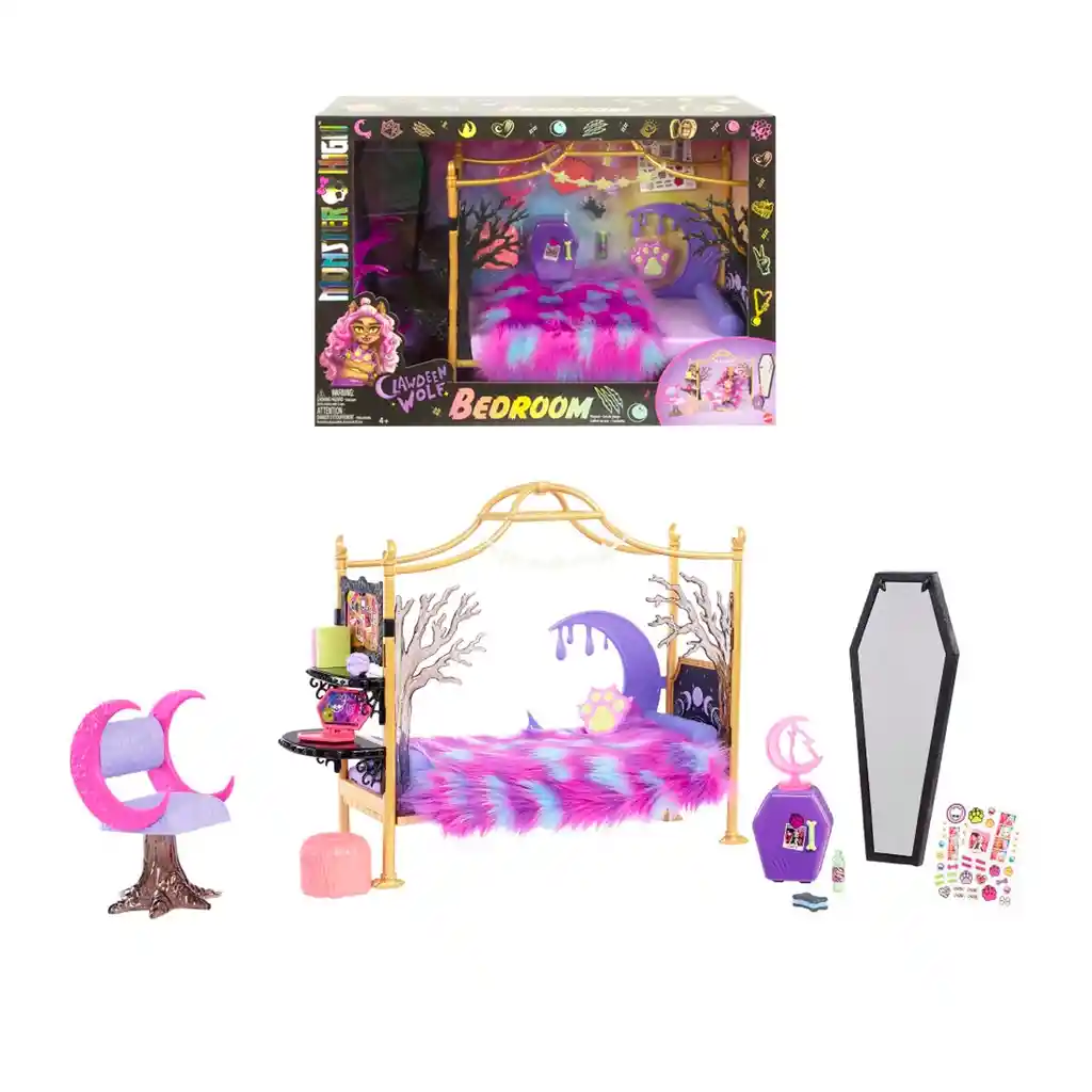 El entretenido y espeluznante set de juego Monster High Habitación de Clawdeen Wolf, tiene todo lo que una mujer lobo con estilo podría desear tener. Incluye todo lo necesario para que puedan crear las historias más terroríficas y tenebrosas, como muebles, una cama, escritorio, un mini refrigerador y un espejo funcionar, todos diseñados con detalles auténticos, raros y fabulosos, además, también viene con una hoja de calcomanías para que lleves el potencial de decoración a otro nivel. (NO incluye muñecas) Este juguete está pensado para incentivar el desarrollo de tus pequeños, ayudándoles a desarrollar sus habilidades cognitivas, su expresión social, emocional, la relación Mano/Ojo, promoviendo en ellos la imaginación, creatividad y el juego de rol.