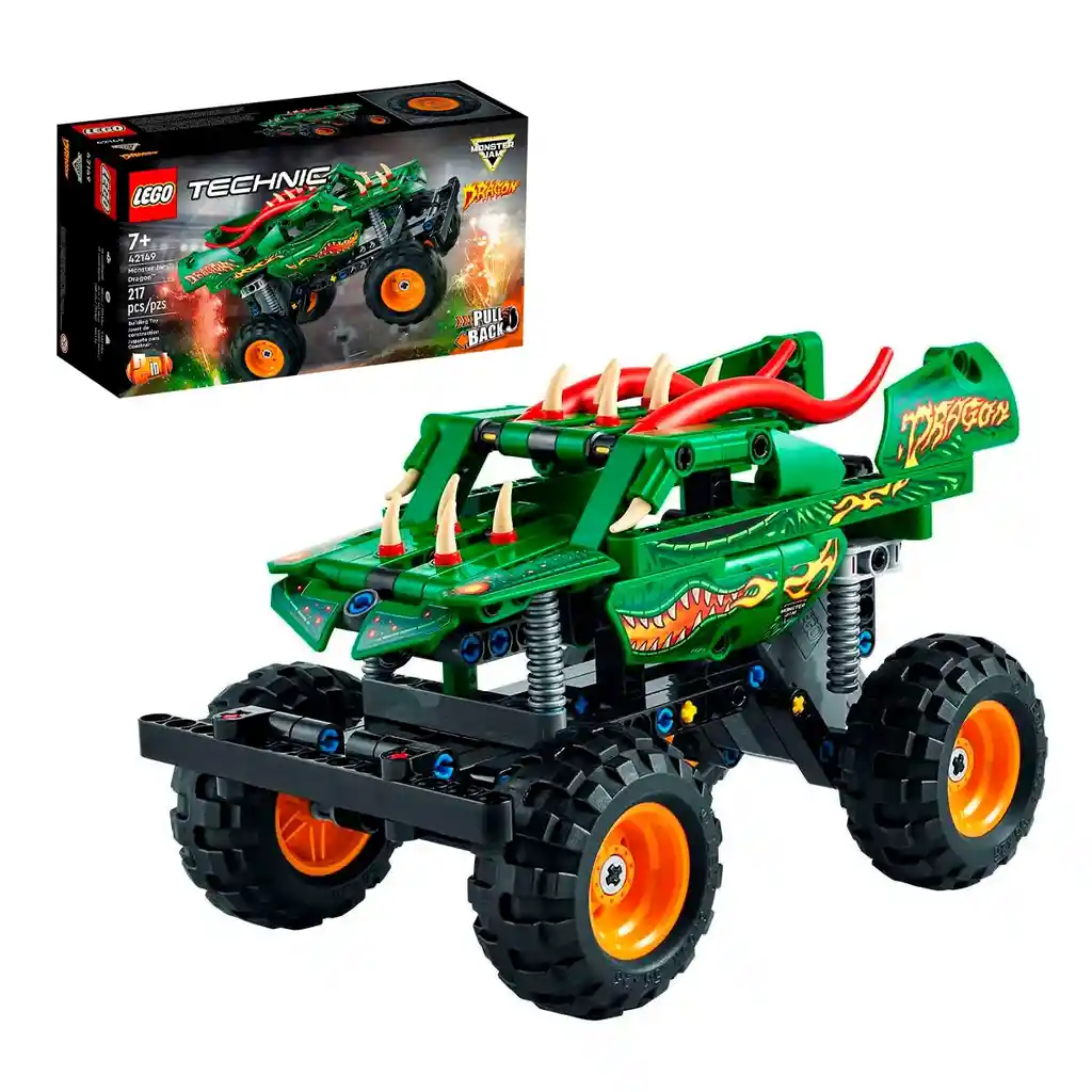 A los fans de las competiciones Monster Jam™ de 7 años o más les espera mucho por descubrir con el camión de carga manual LEGO® Technic Monster Jam Dragon™ (42149). Lleva asombrosos detalles dragontinos, como púas y cuernos, y cuenta con genuinos colores y decoraciones. ¡Este modelo permitirá a los peques recrear los momentos estelares de los espectáculos Monster Jam! “2 en 1” para jugar el doble Cuando los niños quieran probar algo nuevo, pueden convertir este camión Monster Jam de juguete“2 en 1” en un buggy cocodrilo. El motor de carga manual impulsará su camión para participar en carreras y ejecutar los trucos que han visto hacer en las pistas de Monster Jam. Iniciación a la ingeniería Los modelos construibles LEGO Technic reproducen movimientos y mecanismos que permiten a los constructores LEGO adentrarse en el universo de la ingeniería de un modo accesible y práctico. Además, con la app LEGO Builder, podrán acercar y girar modelos en 3D, guardar sets y seguir el progreso. • Un regalo inspirado en un camión monstruo: A los niños les encantará construir el camión LEGO® Technic Monster Jam™ Dragon™ (42149) y competir con él. Equipado con motor de carga manual, este juguete “2 en 1” les reserva largas horas de juego. • Diseñado para jugar a interpretar: Los peques accionarán la carga manual para lanzar el camión a gran velocidad antes de recrear asombrosos saltos y trucos, como el de verdad. • Juguete “2 en 1”: Cuando se sientan preparados para un nuevo desafío, losniños pueden convertir el modelo en un buggy cocodrilo con motor de carga manual. • La genuina decoración del Dragon™: Los peques pueden decorar su camión Monster Jam™ con pegatinas que recrean el diseño del camión Monster Jam original. • Para niños a partir de 7 años: Una fantástica iniciación al mundo de la construcción y la ingeniería para jóvenes fans de las competiciones Monster Jam™. Es perfecto para hacerles un regalo divertido por su cumpleaños o en cualquier otra ocasión. • Un tamaño ideal para jugar: Este modelo de un camión Monster Jam™ mide aproximadamente 12 cm de altura, 19 cm de longitud y 11 cm de anchura. • Una ayuda práctica: Descubre las intuitivas instrucciones de construcción disponibles en la app LEGO® Builder, donde los peques podrán acercar y girar modelos en 3D, seguir su progreso y guardar sets a medida que desarrollen nuevas habilidades. • Iniciación a la ingeniería: Los sets de modelos construibles LEGO® Technic reproducen movimientos y mecanismos de gran realismo que permiten a los jóvenes constructores LEGO adentrarse en el universo de la ingeniería. • Alta calidad: Los componentes LEGO® Technic cumplen rigurosas normas del sector, por lo que ofrecen siempre las mismas cualidades, son compatibles entre sí y se conectan con total fiabilidad una y otra vez. • La seguridad es lo primero: Los componentes LEGO® Technic se dejan caer, se calientan, se aplastan, se retuercen y se analizan para verificar que satisfacen estrictos estándares mundiales de seguridad."