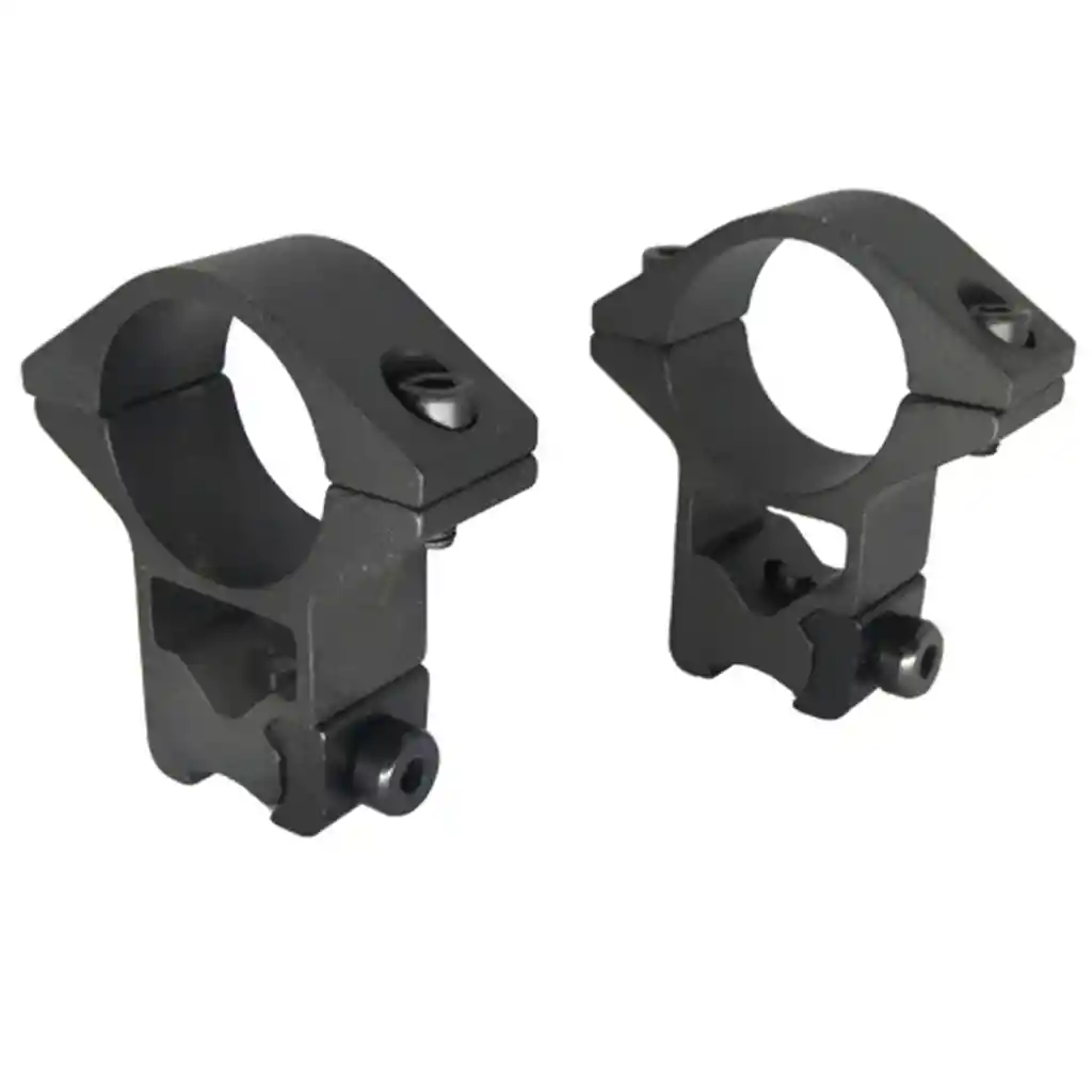 MONTURA BEE 1″ ALTA 3/8 SIMPLE Montaje alto para Mira telescópica 3/8 Scope Rings High Marca BEEMAN Modelo: see-thru HR799-1 Tipo montura alta o tipo 8 Juego de dos monturas Material acero pavonado Color negro Dos tornillos de fijación por anillo (4 en total) Un tornillo para fijar a riel (2 en total) Peso 60 grs Medidas 50x44x14 mm Para miras de diámetro 1 pulgada (25mm) Uso miras propias del rifle mas la montada Con heramienta alen para fijarla. Presentación un par en blister