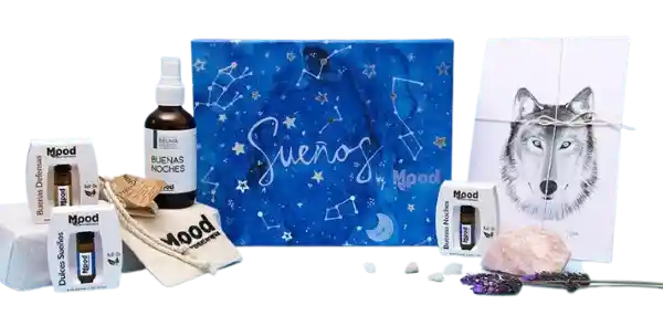 Box Mood Contiene 7 Unidades. Bruma Buenas Noches: 120 mL + Buenas Defensas 1 Und + Dulces Sueños 1 Und + Buenas Noches Para Adultos y Niños 1 Und + Animales de Poder Postales 3 Und. Que te Llevará a Conocer Nuevos Aromas$ Aceites$ Productos y Consejos de Diferentes Animales de Poder Que te Entregarán el Descanso Que Necesitas. ¿Qué Contiene? ¡No te Quedes Sin la Tuya!!