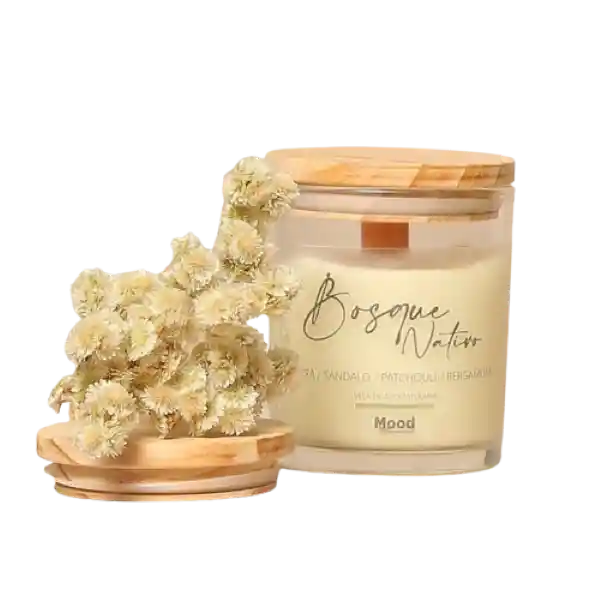 ¿Extrañas Estar Cerca y Conectarte Con la Naturaleza? Mood Quiere Llevarte Hasta Allá a Través de Sus Aromas Florales y Amaderados Podrás Recordar e Imaginar Esos Lugares Significativos Que Son Parte de tu Vida Natural. Vela 100% Natural Con Cera de Soja Una Fusión de Aceites Esenciales Mecha de Madera Packaging Compostable y Envase Reciclable. Aceites Esenciales Que le Entregan a Tus Espacios un Ambiente Único. Enciende Tus Sentidos y Déjate Llevar a Por la Magia de la Aromaterapia en tu Rincón Favorito. Volumen: 190 mL.