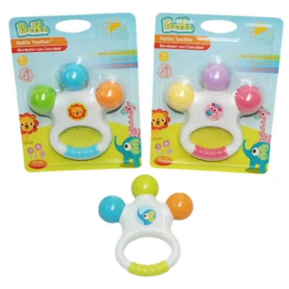 Mordedor con cascabel diseñado con alegres y brillantes colores que estimula a los bebés. Características: Hecho de materiales duraderos Limpiar después de cada uso Lave con agua jabonosa y enjuague bien con agua limpia No apto para lavavajillas, ni microondas. Siempre utilice éste producto bajo la supervisión de un adulto. Edad Recomendada: 3 meses+. Libre De BPA.
