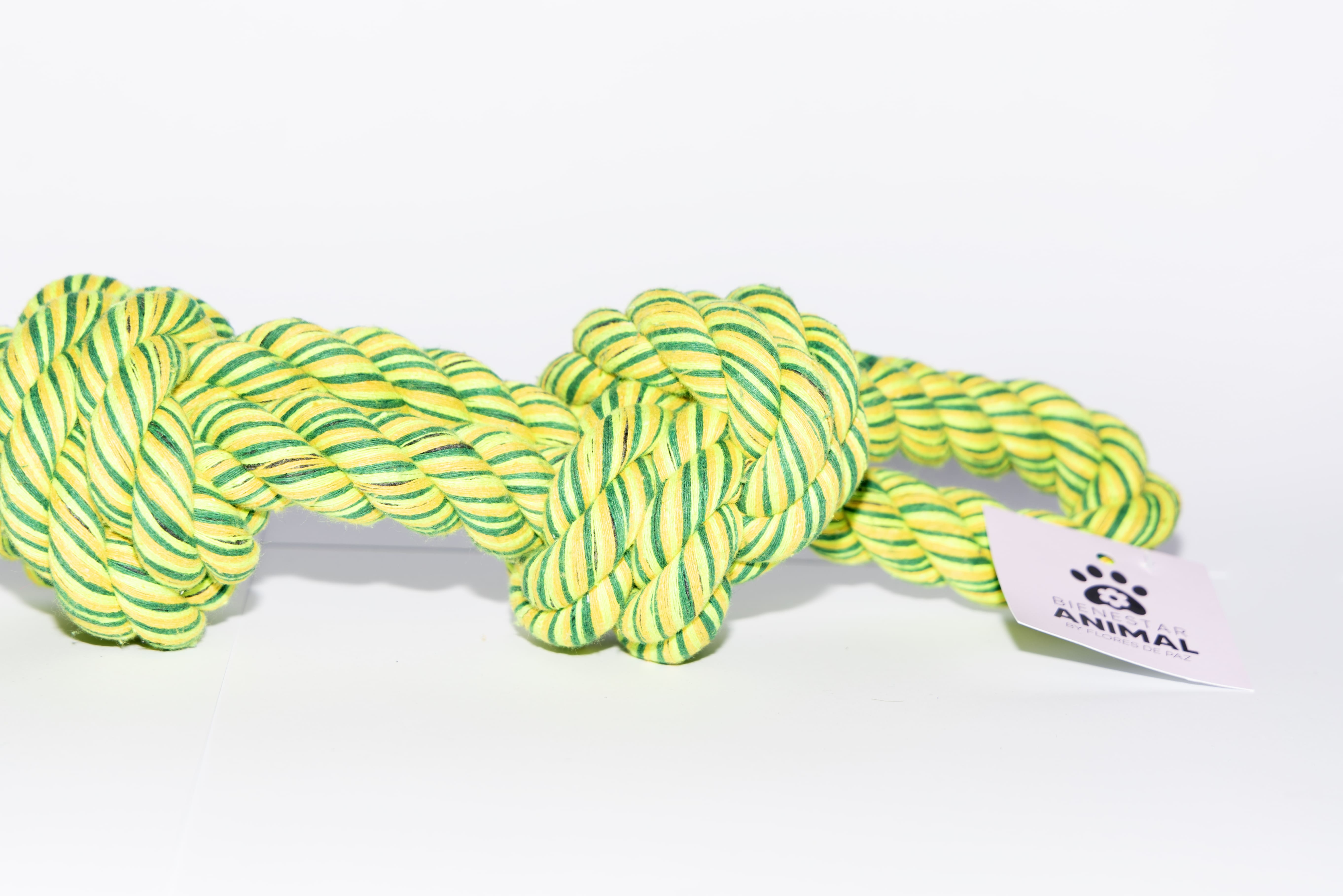 <p>Ideal para perros de Raza grande ( Pastor Alemán, Pastor Belga, Terranova, Husky, Akita, Labrador, Rottweiler, Boyero de Berna, ETC) o medianos. </p> <p>Ideal para jugar, tirar, etc. El material es lino y cuerda de algodón, es grande y resistente, sin embargo no indestructible.</p> <p>Mete premios entremedio de las cuerdas para que asocie el juego y ese momento contigo a algo positivo. </p> <p>Todo juego debe ser supervisado por su tutor.</p>