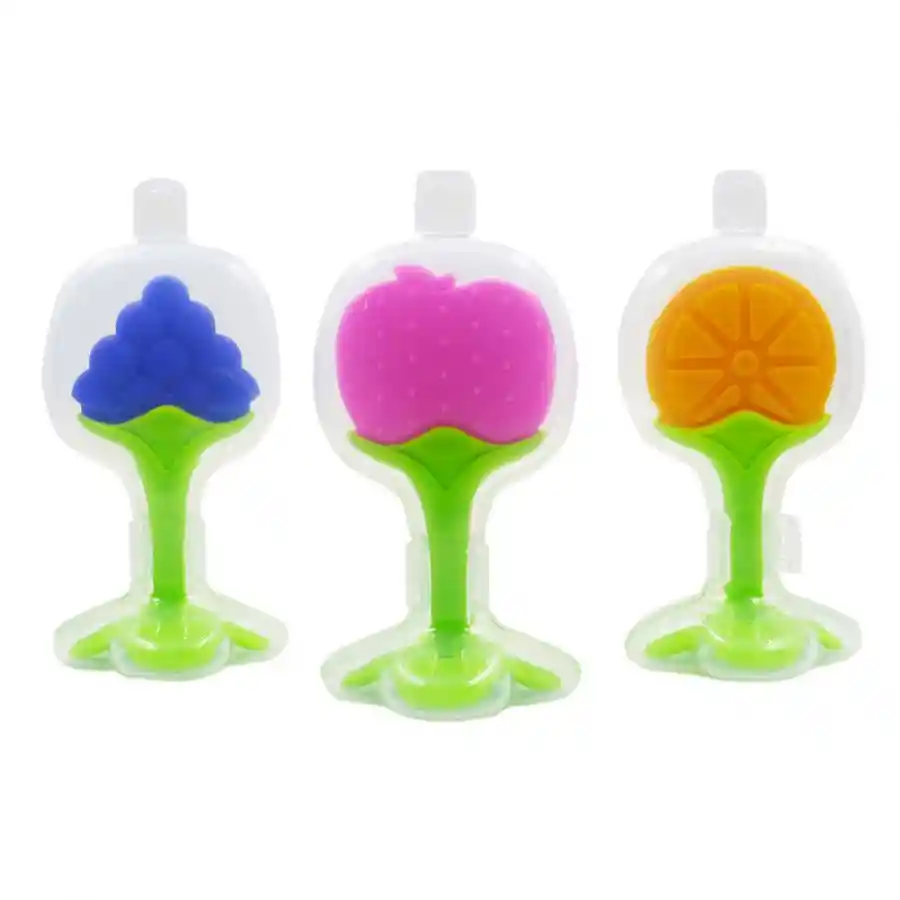 Encaja perfectamente en la boca del bebé Masajea suavemente las encías Diseño con forma de frutas Producto multifuncional también se puede utilizar como juguete Material no tóxico Especificaciones: Material: Silicona Color: Variados Tamaño: 10 x 4 cm aprox Contenido: 1 Mordedor Silicona Fruta Peso: 1